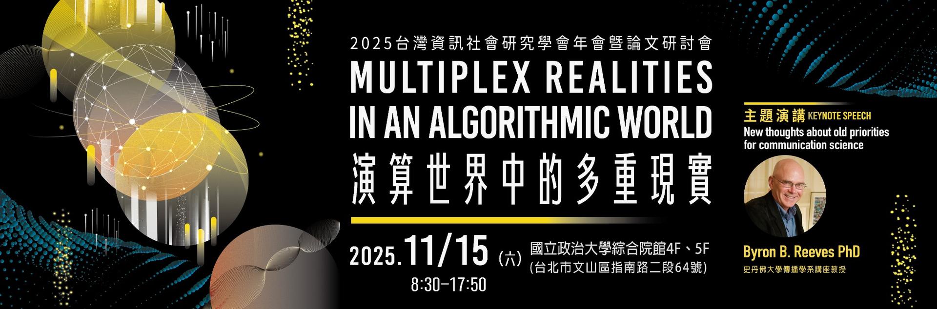 2025 台灣資訊社會研究學會年會暨論文研討會徵稿說明主題:Multiplex Realities in an Algorithmic World 演算世界中的多重現實地點:國立政治大學(台北市文山區指南路二段64號)時間:2025 年 11 月15 日(週六)一、主題說明在數位科技 ...