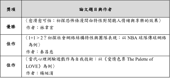 學生組論文競賽得獎名單PDF檔,請見:學生組論文競賽得獎名單